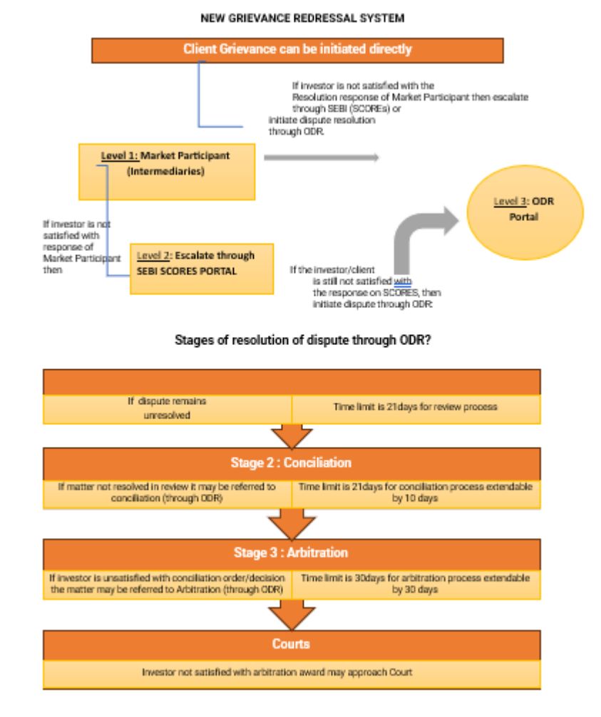 If the Investor is not satisfied with the resolution provided by DP or other Market Participants, then the Investor has the option to file the complaint/grievance on SMARTODR platform for its resolution through by online conciliation or arbitration. [https://smartodr.in/register] |